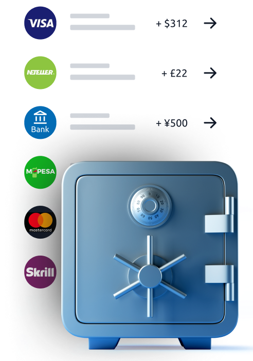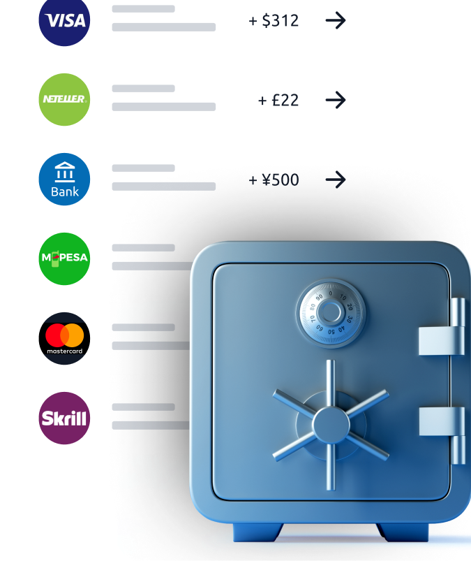 قم بتمويل حسابك باستخدام مجموعة من وسائل الدفع الآمنة، واسحب من رصيدك في أي وقت ومن أي مكان.