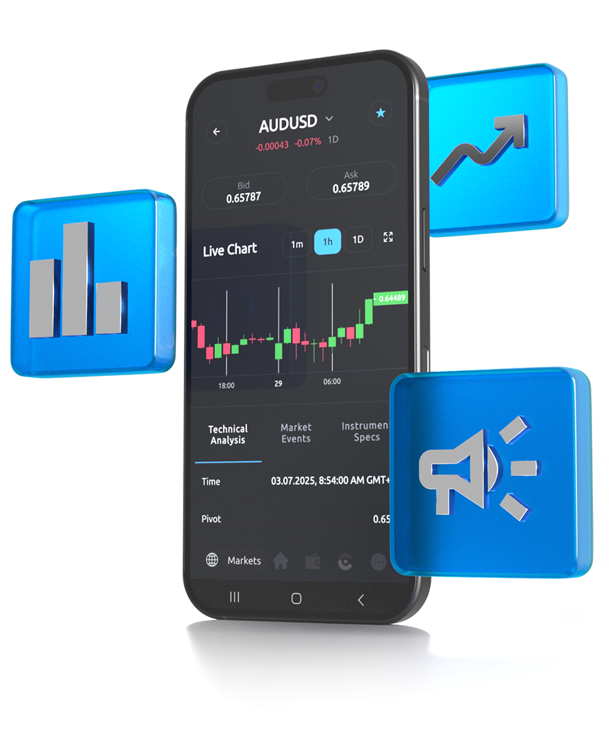 عيّن تنبيهات لتحركات الأسعار على أزواج الفوركس، المؤشرات، السلع، الأسهم، وغيرها.